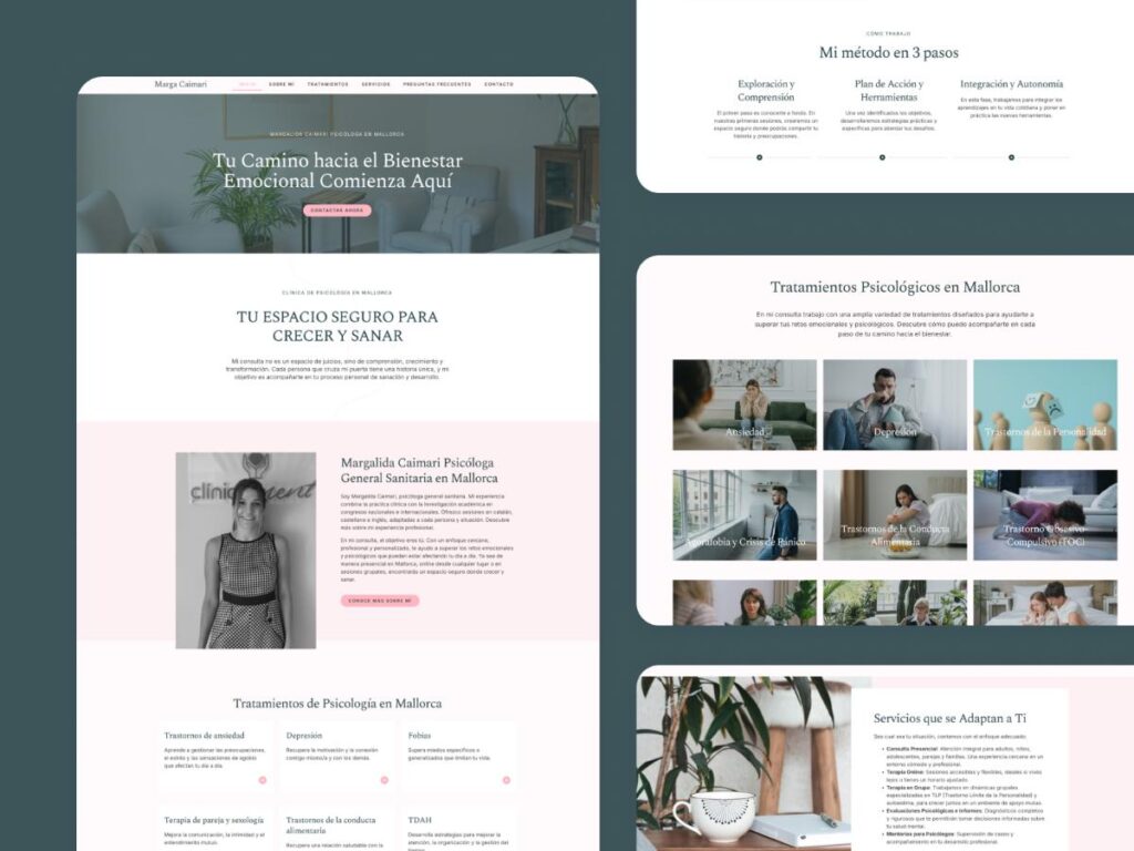 Cada psicólogo es único, al igual que sus enfoques y estilos terapéuticos. Es por eso que te ofrezco una web diseñada a medida y adaptada a tus necesidades.